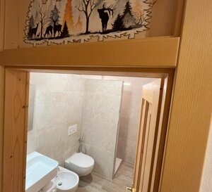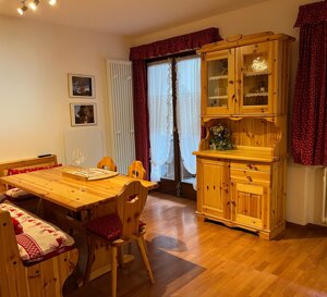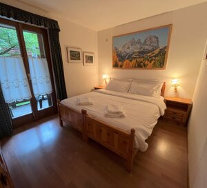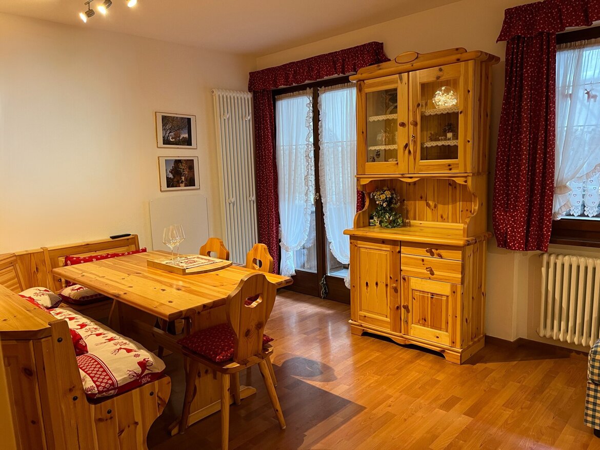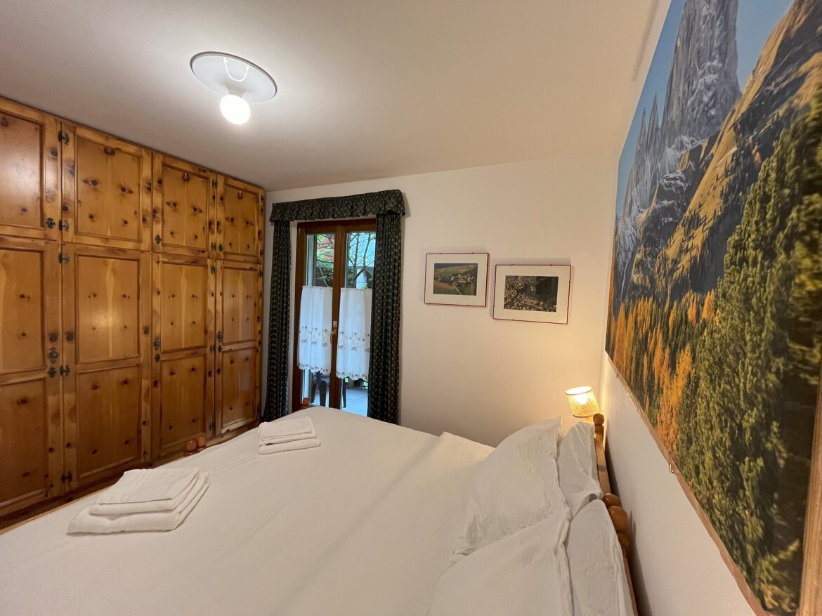 Al piano terreno, con pochi gradini, arredato in tipico stile montano, confortevole bilocale davvero perfetto per due persone che desiderano un luogo ampio con ambienti giorno e notte separati, ma adatto anche a quattro persone abituate ad uno stile familiare di condivisione: una camera matrimoniale, grande soggiorno-cucina con un ampio accogliente divano, anche letto matrimoniale, un bagno con doccia e bidet, due ampie terrazze di cui una con accesso diretto al piccolo giardino comune e l'altra con cuccia in legno a casetta per cani di media/grande taglia. A disposizione durante il tuo soggiorno: Wi-Fi superveloce illimitato gratuito, forno a microonde, piano cottura a induzione con quattro fuochi, lavastoviglie, comodo frigorifero con congelatore, coperte-piumoni da letto con cuscini, stoviglie e pentole, asciugacapelli, aspirapolvere. Ampio parcheggio esterno privato gratuito per più auto non assegnato/non custodito.  Animali ammessi previo accordo, da prenotare.  Attrezzatura per stirare e seggiolone su richiesta. Lenzuola e asciugamani li vuoi portare tu? Chiedi in prenotazione!